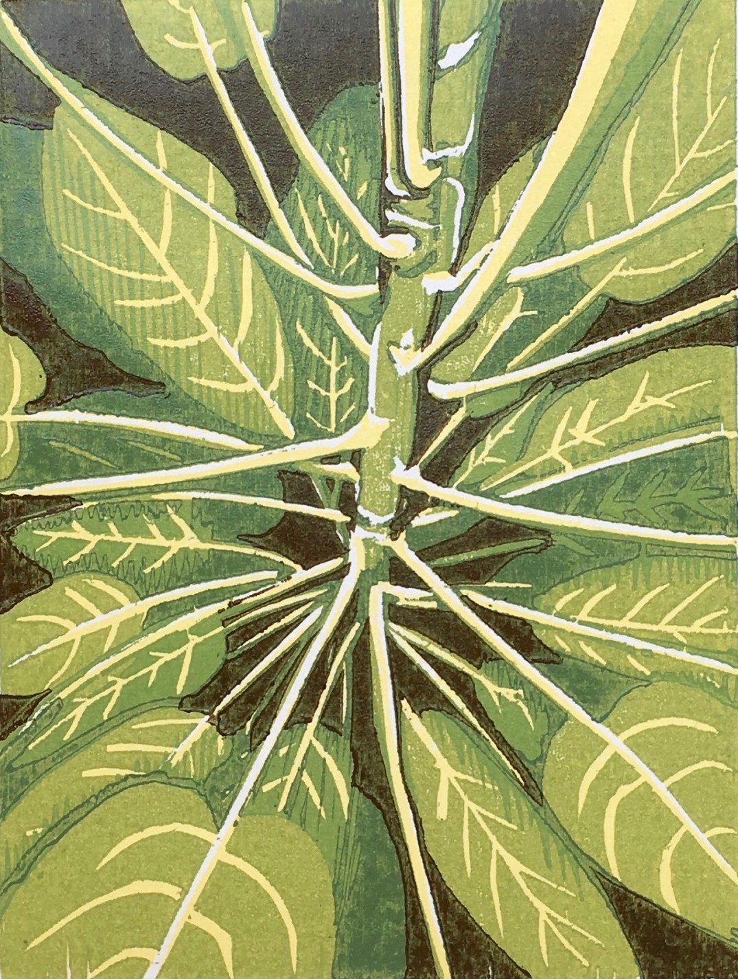 I have added this woodcut to my Latest page. I was influenced by the tragedy of the fires damaging the Amazon rain forest where even small plants like this one show the rhythmical pattern of growth that is helping to sustain life on this planet.