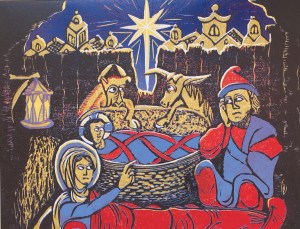 Hand printed from wood cut, wood engraving and linocut blocks