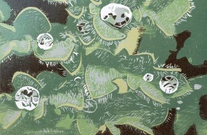 Hand printed from wood cut, wood engraving and linocut blocks