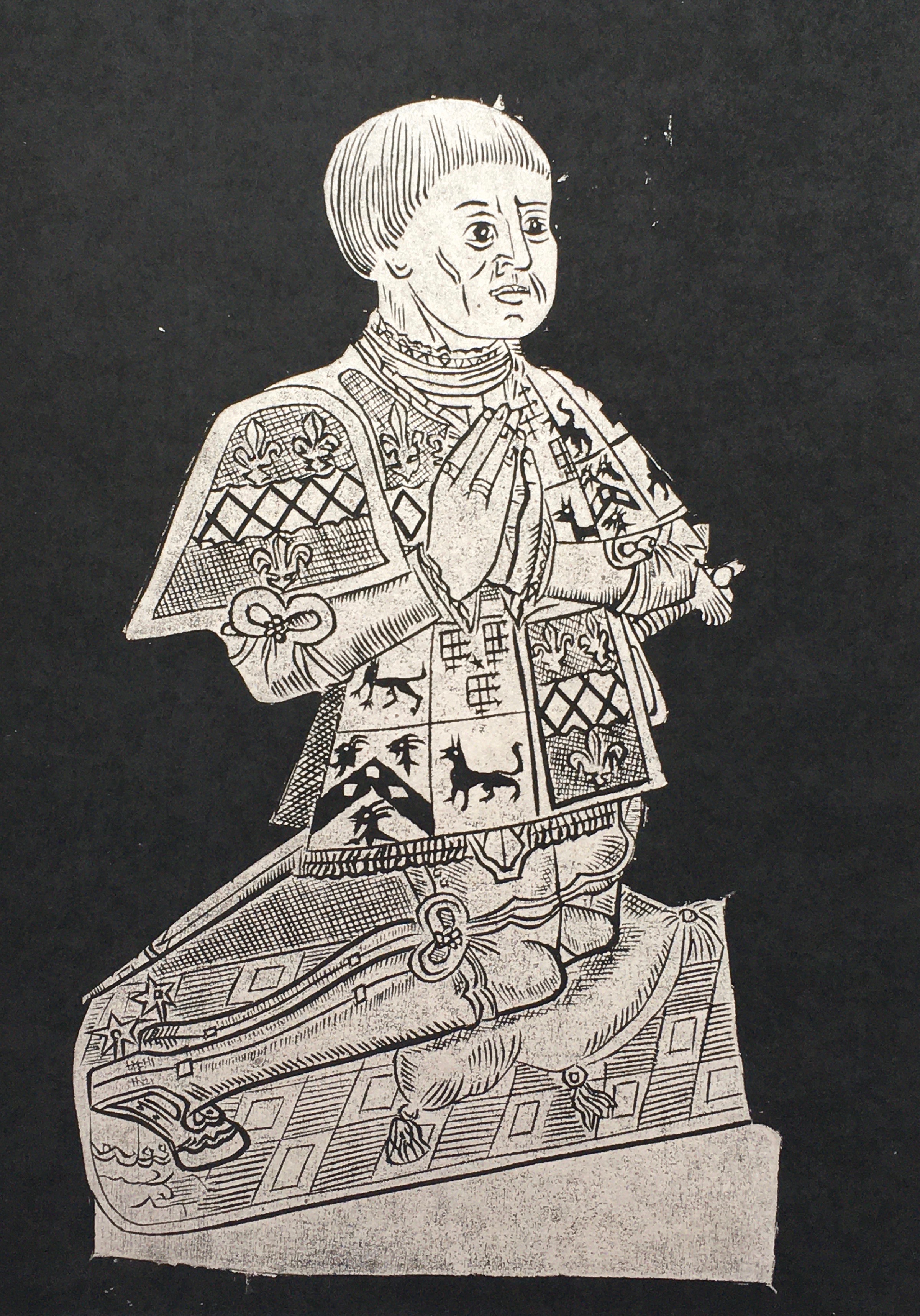 Beckenham Brass 1 is a limited edition (50) hand printed wood cut (approx A4 size) that is based on the brass memorial to Sir Humphrey Styles using mix or silver and gold ink on a black background. The original can be seen in the Lady Chapel of St George’s Church, Beckenham. Click here to see the image more clearly