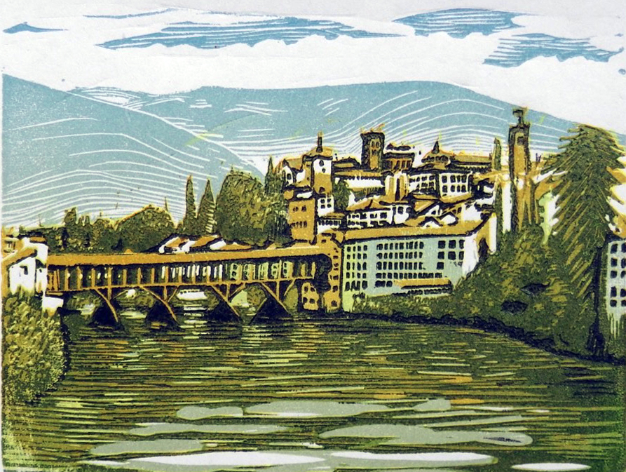 - Bassano: This is a 5 wood engraving block print of the view of the ancient Bridge of the Alpinos in Bassano del Grappa, Veneto, Italy. This reduction wood engraving block is 7.6 x 10 cm and is an original limited print edition of 28.Click here to see the full image.